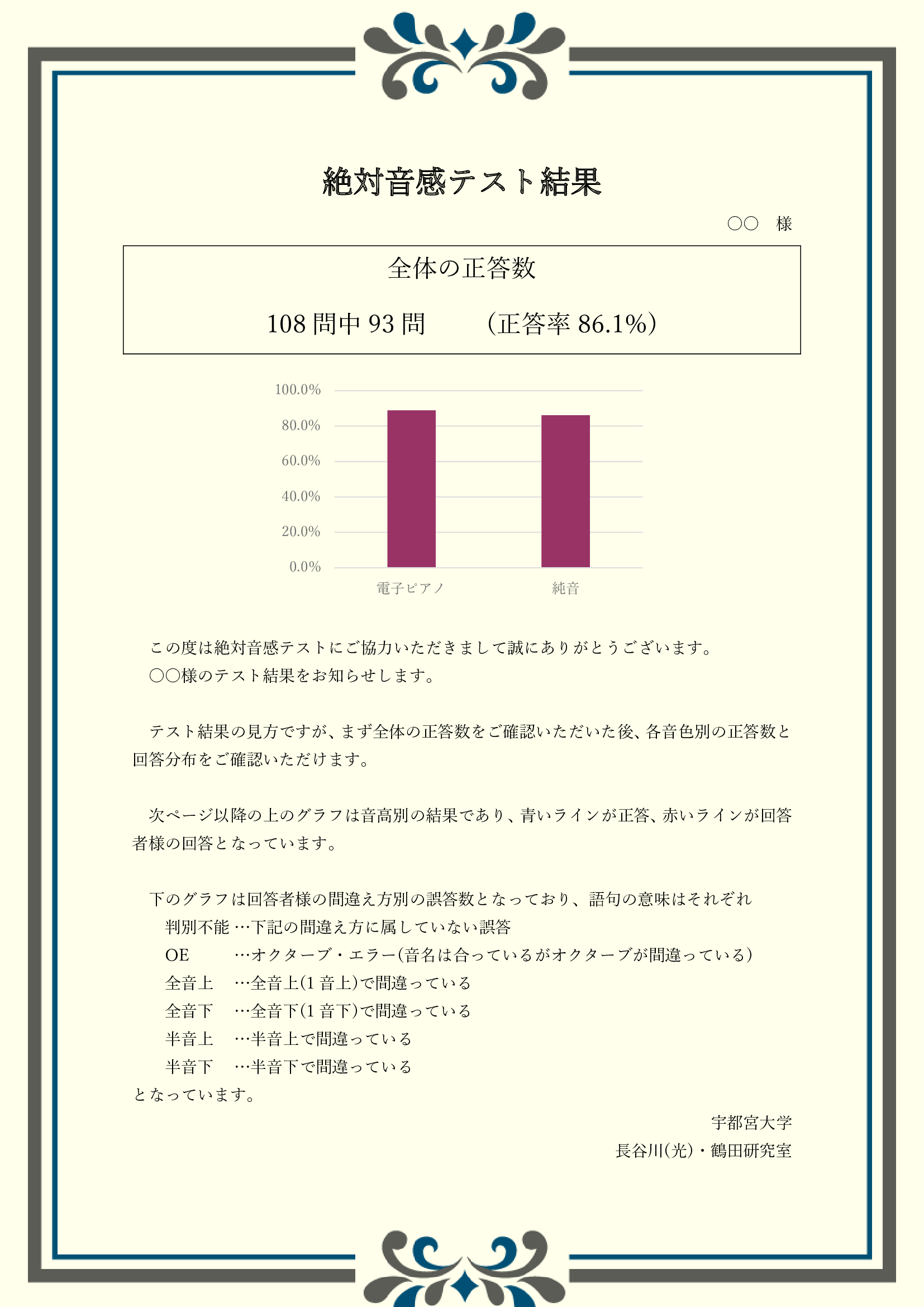 私たちは,絶対音感の能力が加齢とともにどのように変化するかについて,調査研究を行っています。