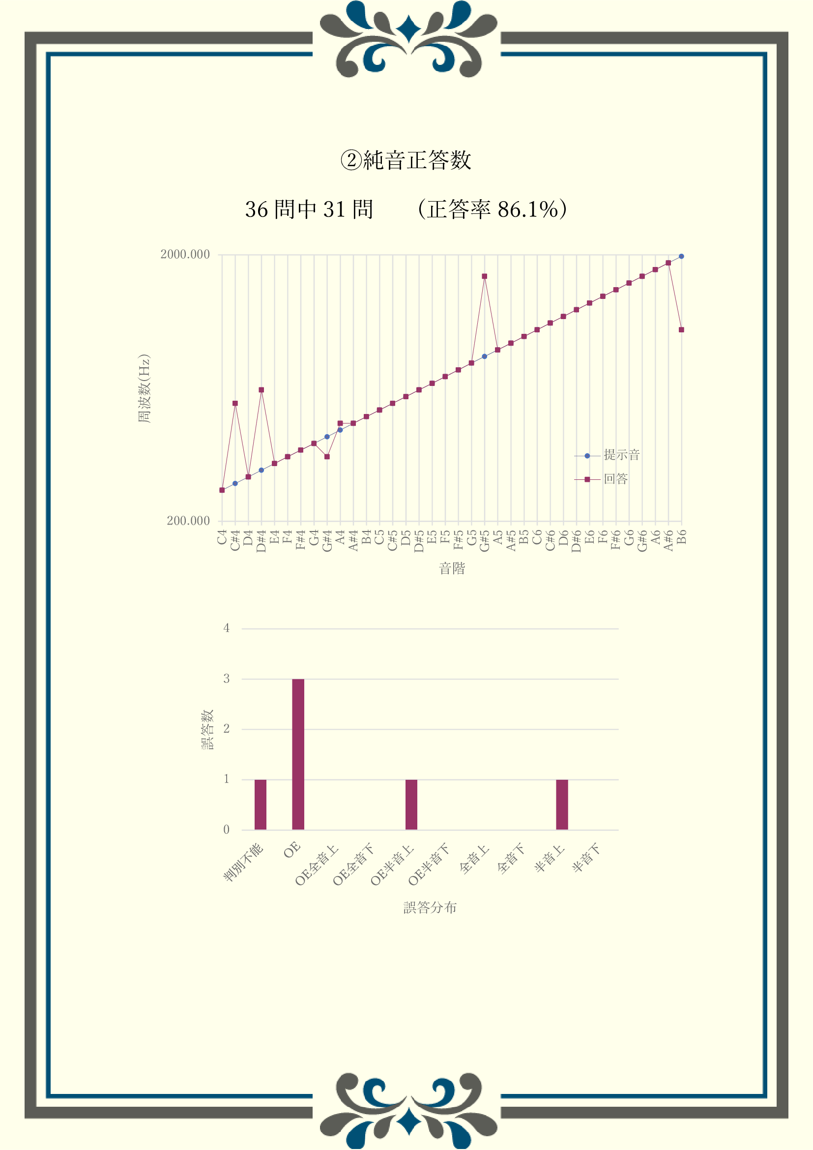 さらに,間違えた音について,音程のずれ具合をグラフで確認することができます。